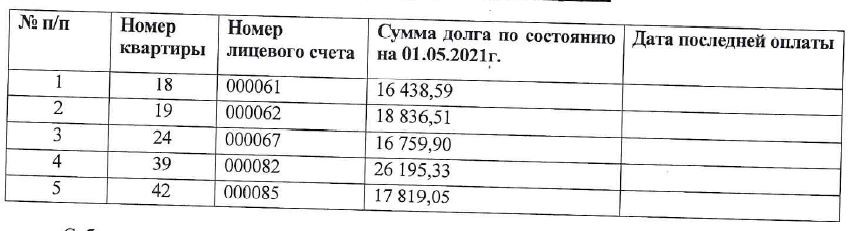 Список должников пер. Мартовский д.1, корпус 2