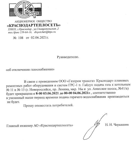 По информации АО «Краснодартеплосеть» в связи с проведением плановых ремонтных работ будет приостановлена подача горячей воды в период с 08:00 03.06.2021 до 00:00 04.06.2021.